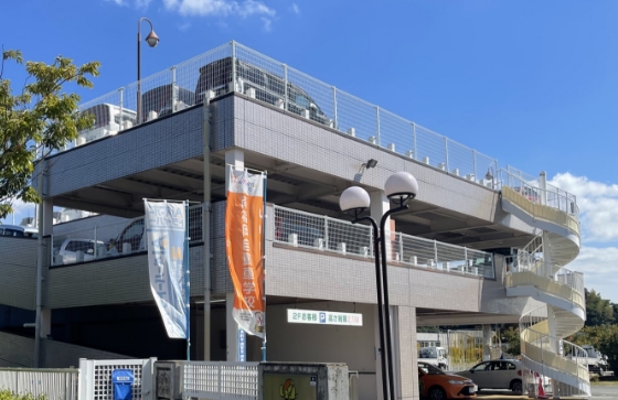 車でお越しになる方は、ゆったりと駐車できる無料立体駐車場をご利用ください。車もバイクも2階がお客様駐車場です。