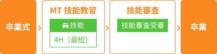 • ※技能時限は最短時限を示しており、この時限を超える場合及び検定不合格の場合は別途延長教習(補習)料金がかかります。